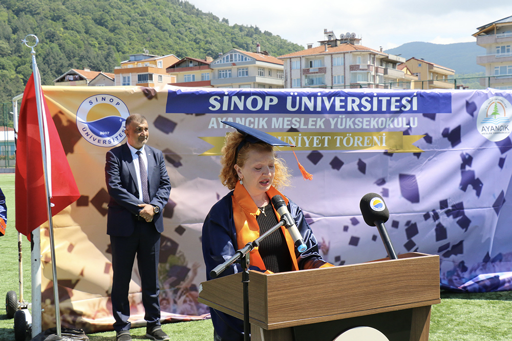 Programın açış konuşmasını yapan Ayancık Meslek Yüksekokulu Müdürü Öğr. Gör. Şemseddin Uluçam “Bugün burada büyük bir gurur ve mutlulukla mezuniyet törenimizi kutlamak üzere toplanmış bulunuyoruz. Bu anlamlı günde, sizlerle birlikte olmaktan büyük bir onur duyuyorum.” şeklinde konuştu.