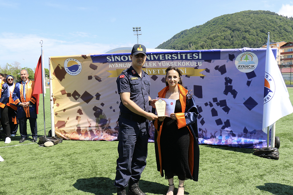 Ayancık Meslek Yüksekokulunda düzenlenen mezuniyet töreninde öğrencilerimiz ve aileleri mezuniyet sevinci yaşadı.