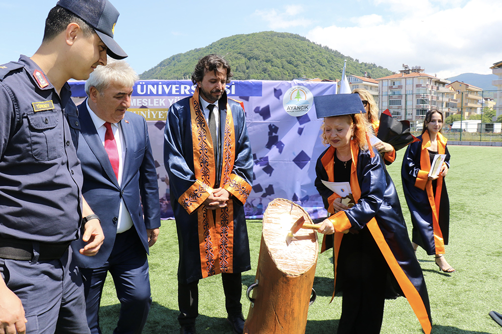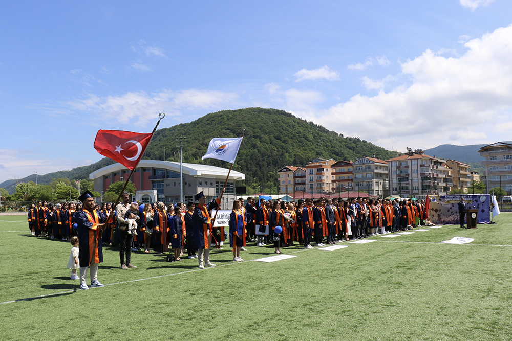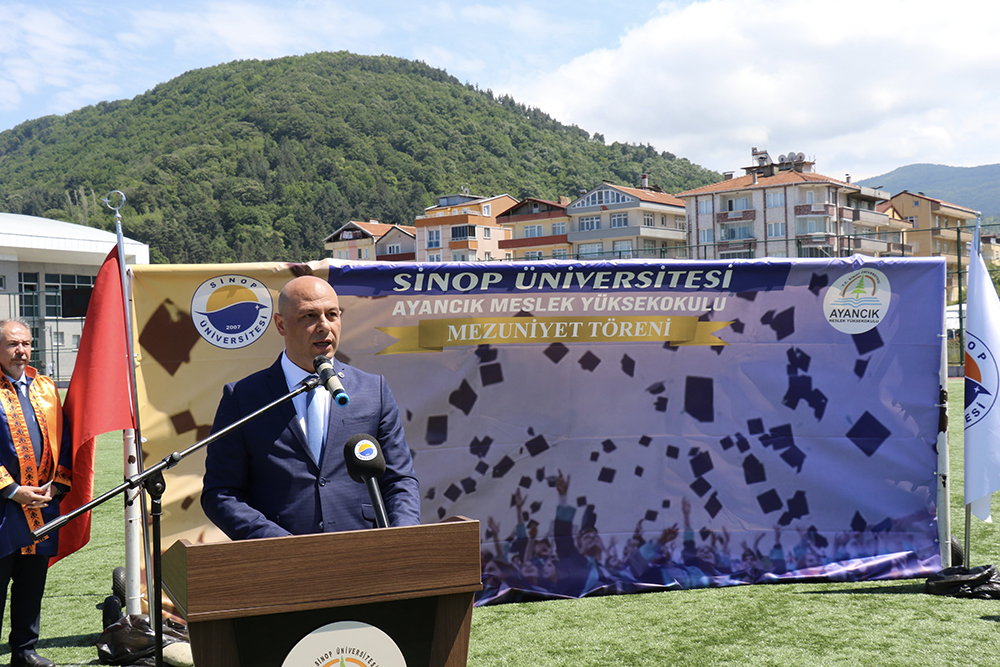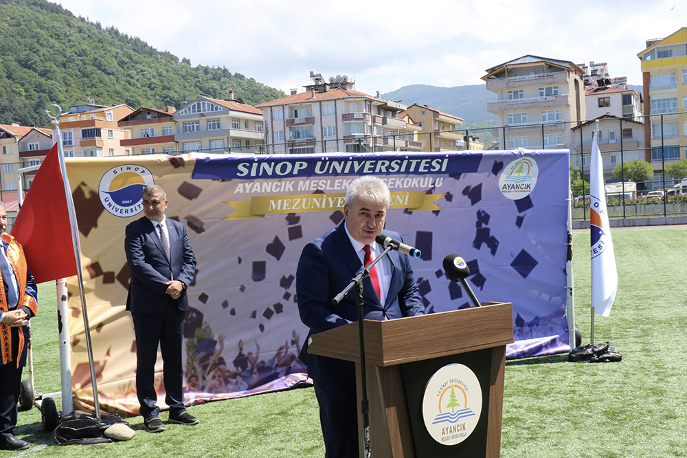 Ayancık Gazi Stadında düzenlenen programa; Belediye Başkanı Hayrettin Kaya, Rektör Yardımcımız Prof. Dr. Rıza Bayrak, ilçe protokolü, akademik-idari personelimiz, veliler ve öğrenciler katıldı.