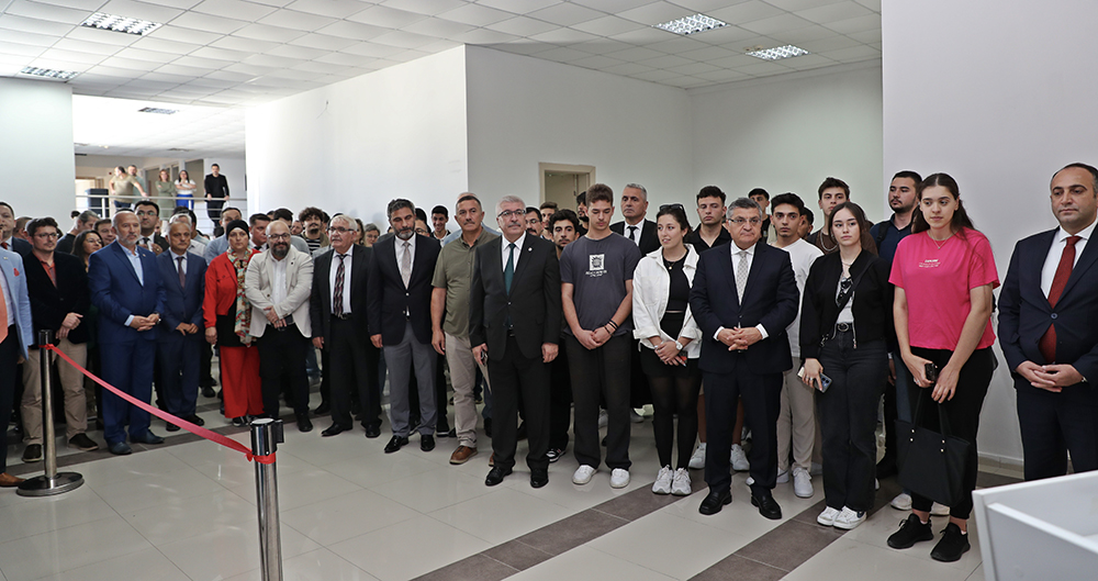 Üniversitede atölye ve kulüp çalışmalarının daha etkin yapılmasını sağlayacak olan “Genç Ofis” açılışına; Vali Dr. Mustafa Özarslan, Rektörümüz Prof. Dr. Şakir Taşdemir, Vali Yardımcısı Abdullah Yüksel, Gençlik ve Spor İl Müdürü Mehmet Kalyon, kurum müdürleri, akademik-idari personelimiz ile öğrenciler katıldı.