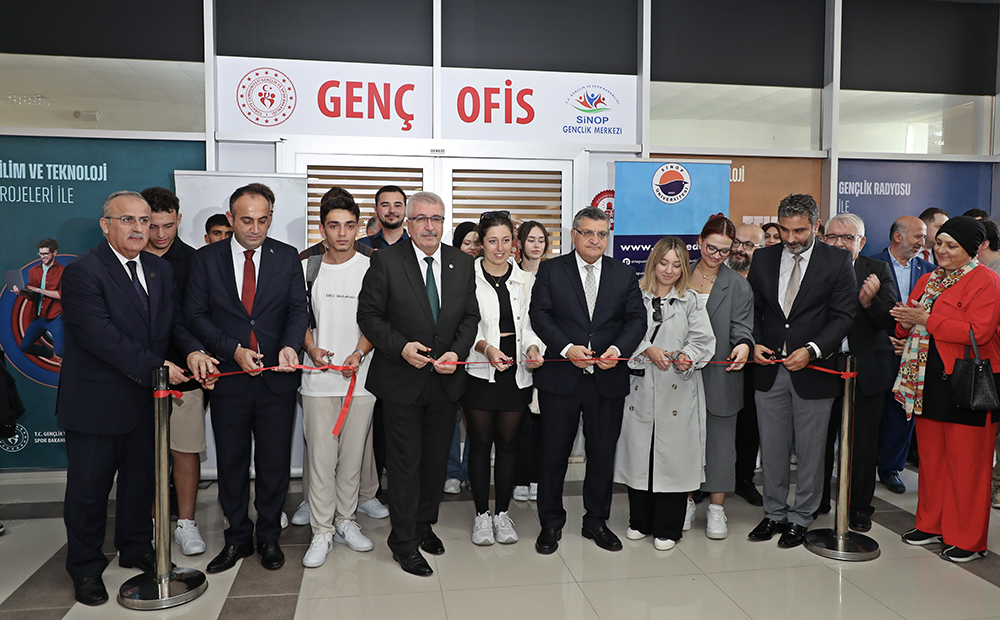 Üniversitemiz ile Sinop Gençlik ve Spor İl Müdürlüğü iş birliği kapsamında, öğrencilerimizin kişisel ve sosyal gelişimlerine katkı sağlamak amacıyla Sinop Üniversitesi Fen-Edebiyat Fakültesi içerisinde “Genç Ofis” açıldı.