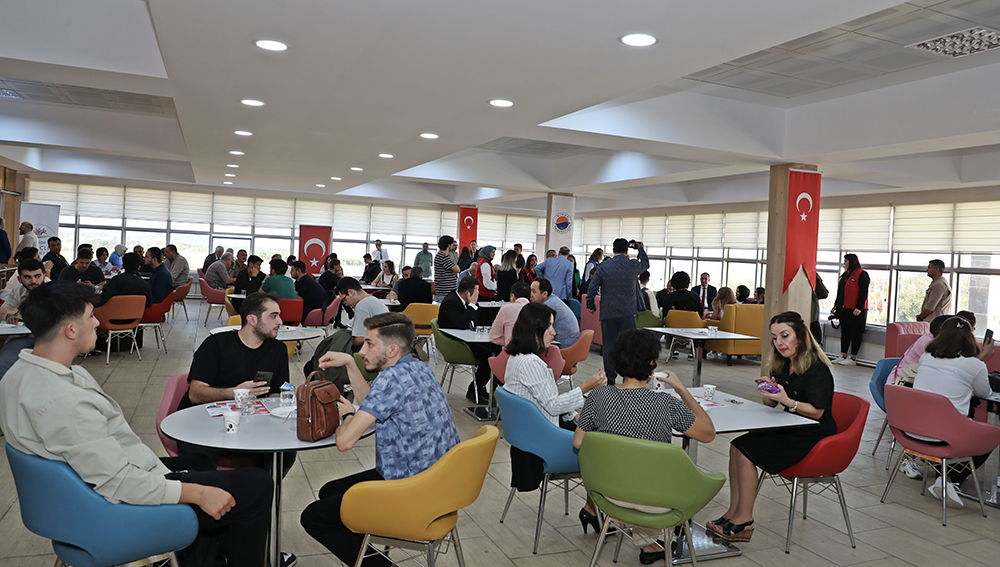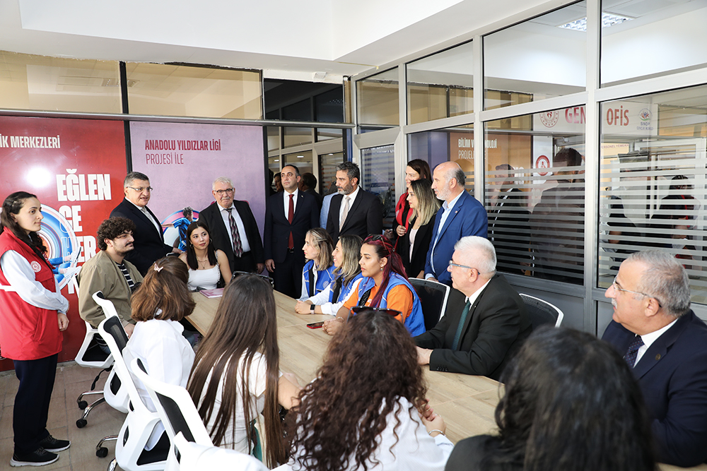 Konuşmalarının ardından Genç Ofis’in açılış kurdelesini öğrencilerle birlikte kesen Protokol Üyeleri daha sonra Ofisi birlikte gezerek, öğrencilerle sohbet etti.