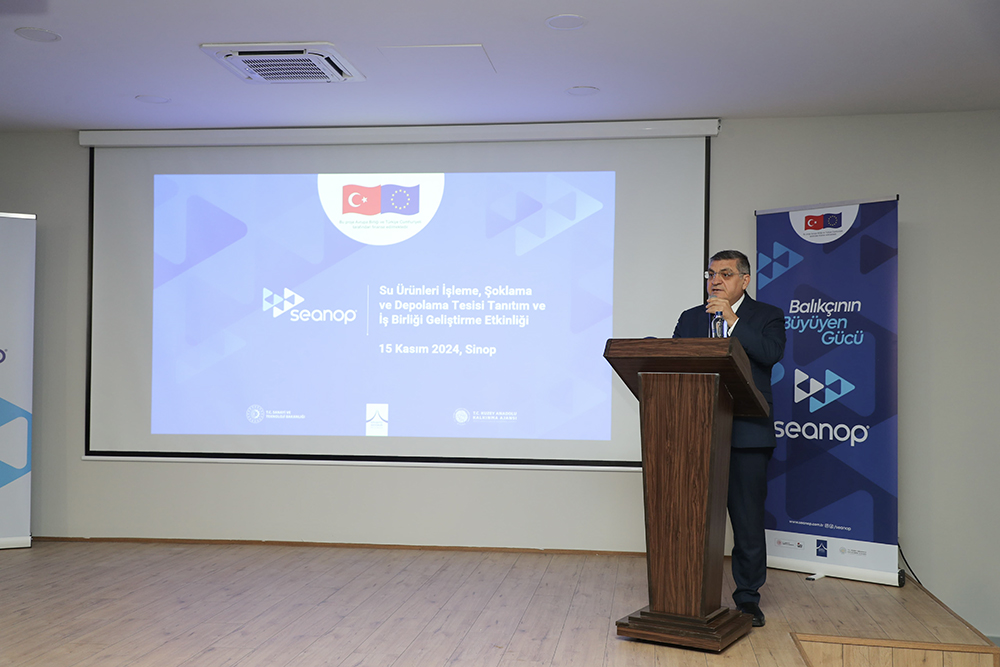 Sinop’ta, Avrupa Birliği ve Türkiye Cumhuriyeti ortak finansmanı ile Sanayi ve Teknoloji Bakanlığı tarafından yürütülen Rekabetçi Sektörler Programı kapsamında, Kuzey Anadolu Kalkınma Ajansı tarafından uygulanan ve Üniversitemizin paydaş olduğu “Sinop’ta Temel Sektörlerin Rekabetçiliğinin Artırılması Projesi” çerçevesinde SEANOP Su Ürünleri İşleme, Şoklama ve Depolama Tesisi’nin tanıtım ve iş birliği geliştirme programı düzenlendi.