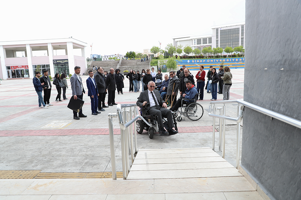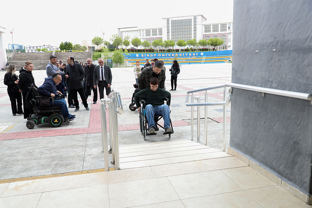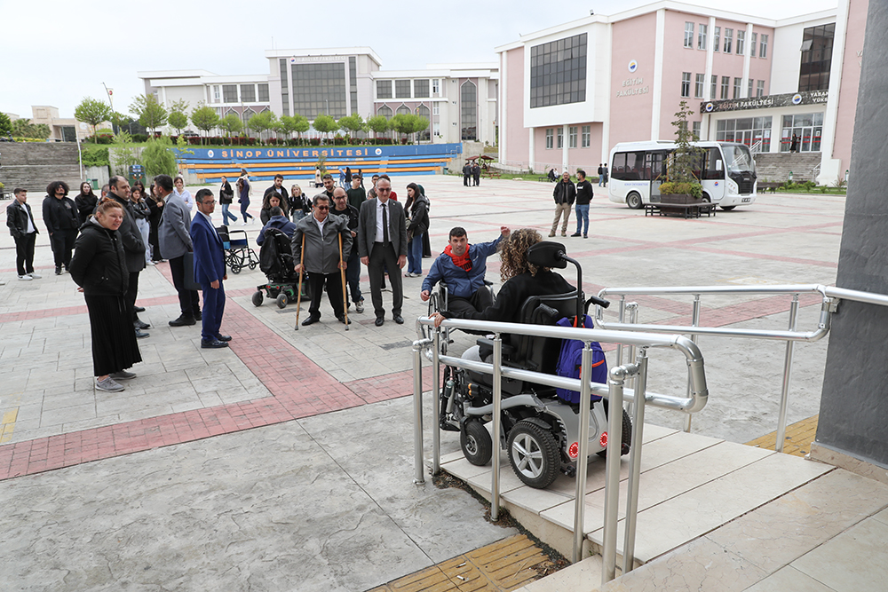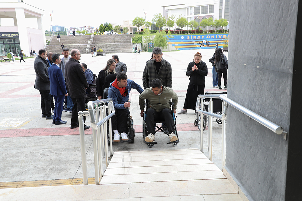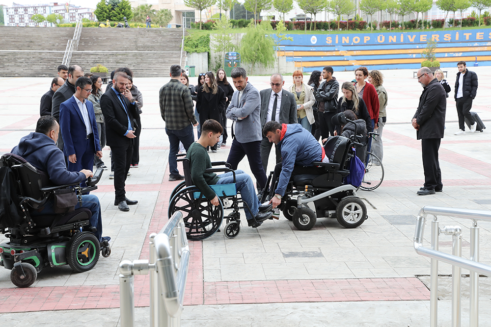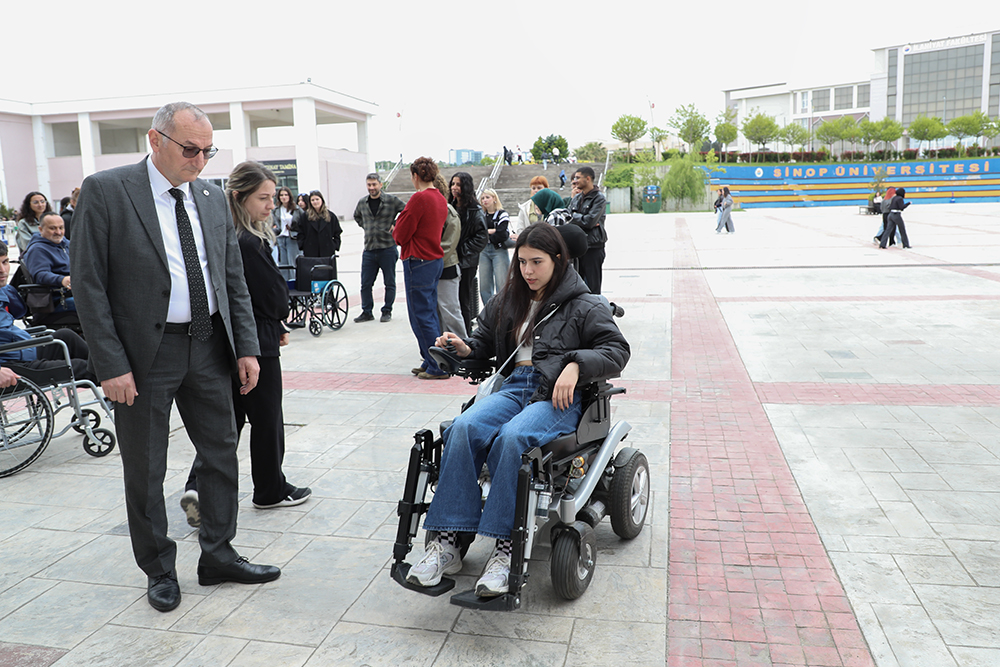 Üniversitemiz Engelli Öğrenci Birim Koordinatörlüğü ile Türkiye Sakatlar Derneği Sinop Şubesi iş birliğinde, Üniversite Yaşam Merkezi’nde düzenlenen “Fiziksel Erişilebilirlik ve Farkındalık” etkinliğinde öğrencilerimiz tekerlekli sandalye ile hareket etmenin zorluğunu yaşadı.
