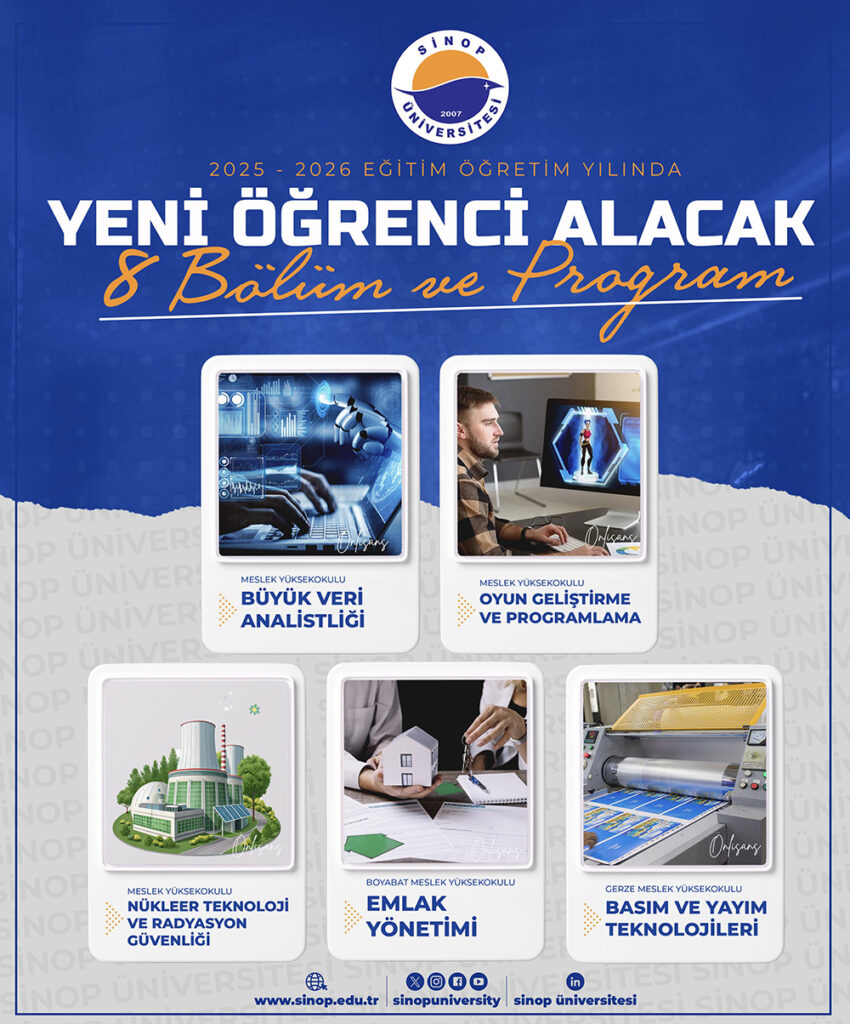 Üniversitemiz, 2025-2026 eğitim-öğretim yılında öğrenci alacak 8 yeni bölüm ve programla eğitim yelpazesini genişletiyor. Çağın gereksinimlerine uygun olarak açılan bu bölüm ve programlar hem öğrenci sayımızı artıracak hem de nitelikli insan kaynağı yetiştirebilmemize olanak sağlayacak.