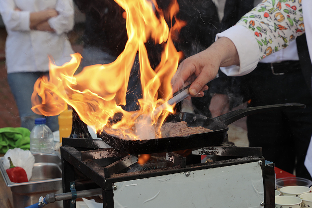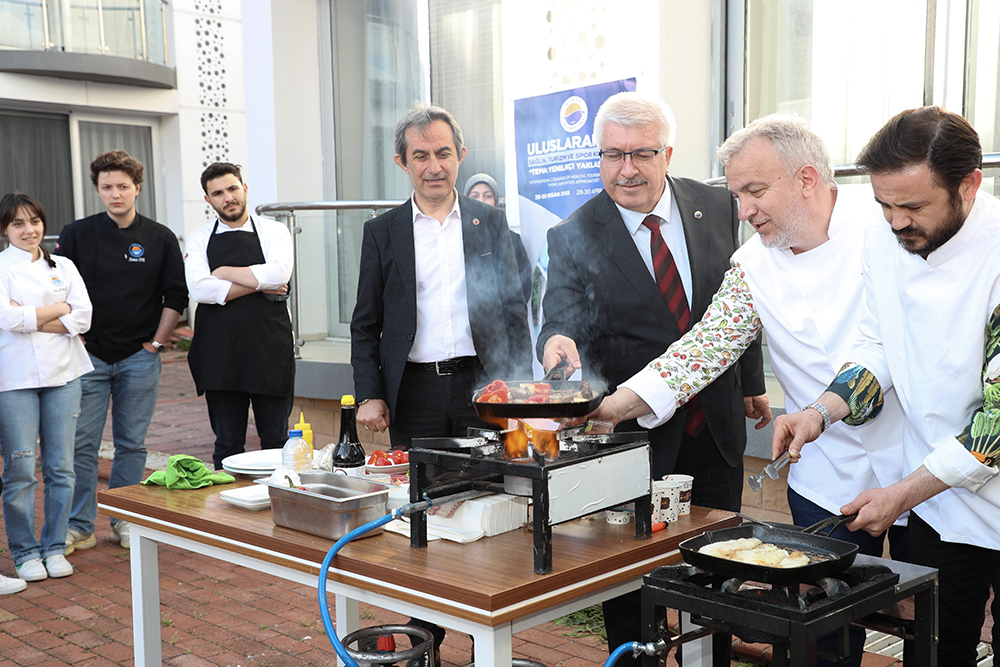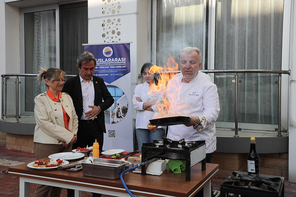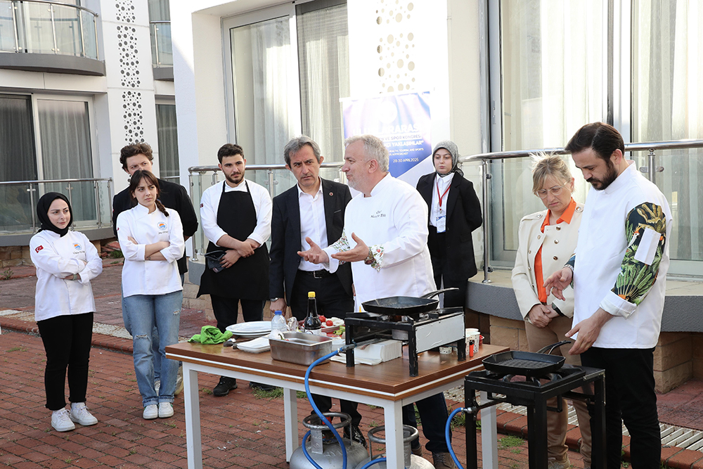 Uluslararası Sağlık, Turizm ve Spor Kongresi kapsamında düzenlenen workshop etkinliği, izleyenlere görsel bir şölen sundu. Etkinlikte balık ve kırmızı et pişirilerek katılımcılara ikram edildi.