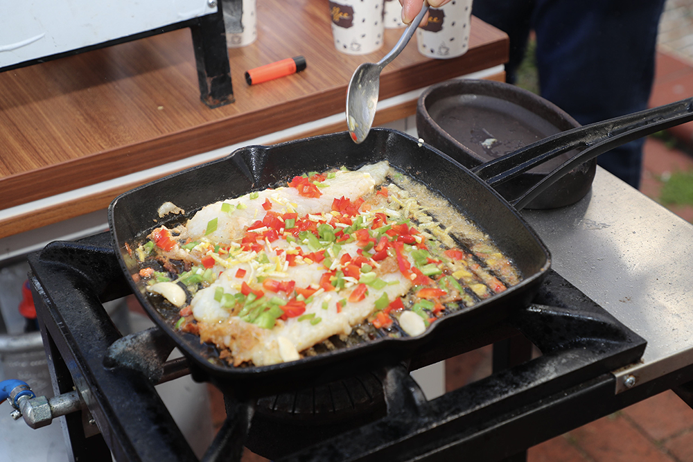 Katılımcılar, sunulan lezzetlerin ve canlı pişirme gösterisinin tadını çıkarttı.