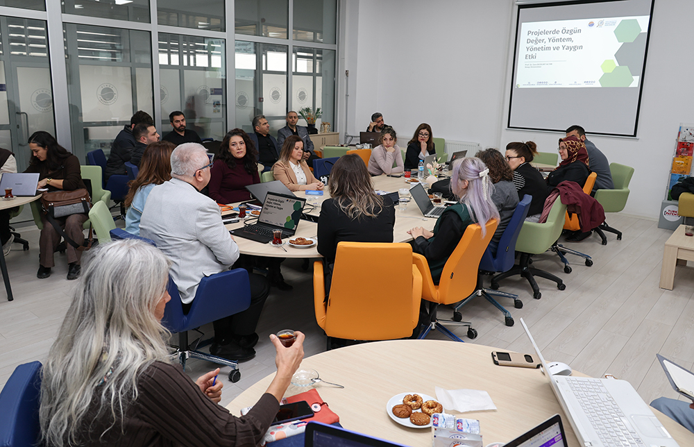 Araştırma Dekanlığı Akademik Üretim Atölyesinde düzenlenen çalıştayda, katılımcılara TÜBİTAK 1001 proje önerilerinin değerlendirme ölçütlerine uygun biçimde güçlendirilmesine yönelik temel başlıklar aktarıldı ve iyi uygulama örnekleri üzerinden değerlendirmeler paylaşıldı.