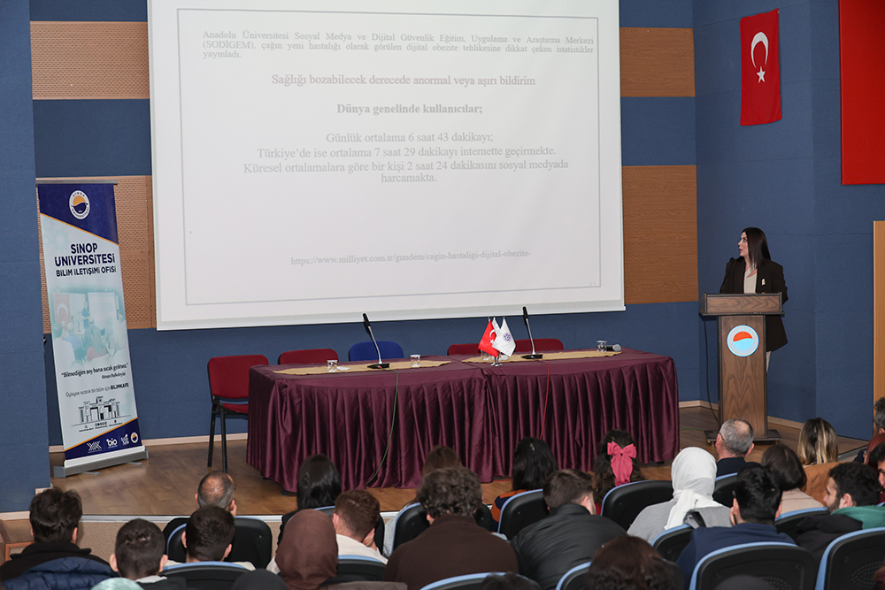 Üniversitemiz Fen-Edebiyat Fakültesi, Bağımlılıkla Mücadele Uygulama ve Araştırma Merkezi (SUBAM), Bilim İletişimi Ofisi (BİO) ve Bilim Kafe iş birliğinde “Ekranın Ötesinde: Dijital Bağımlılık ve İnsan” adlı konferans düzenlendi.
