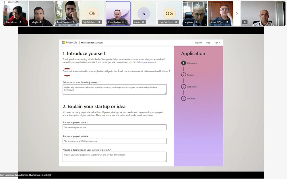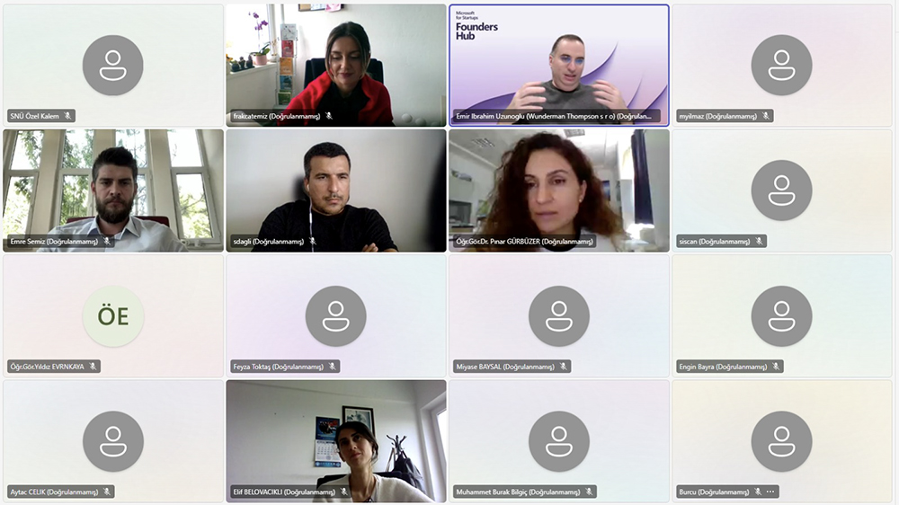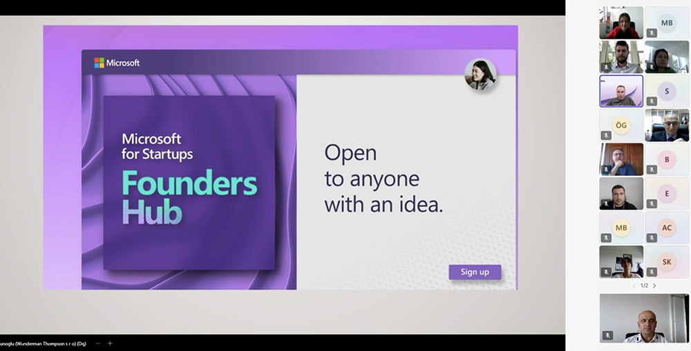 Koordinatör Yardımcısı Öğr. Gör. Fatma Rabia Akçatemiz’in moderatörlüğünde, Microsoft for Startups Founders Hub Programı Yöneticisi Emir Uzunoğlu’nun katılımıyla çevrimiçi gerçekleştirilen toplantıda, Microsoft’un girişimcilere sağladığı ücretsiz imkanlar detaylı bir şekilde aktarıldı.