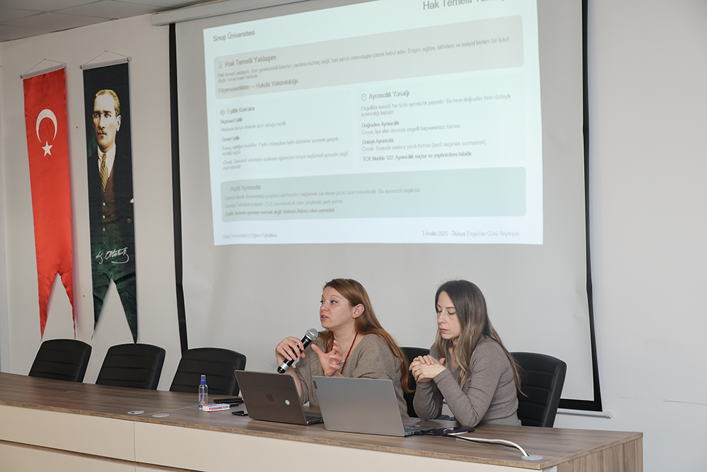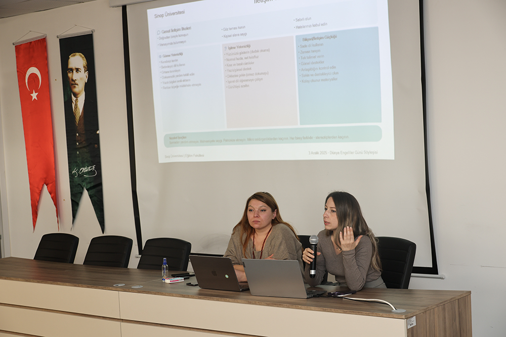 Programda Eğitim Fakültesi akademisyenleri Dr. Öğr. Üyesi Işıl Terzioğlu ve Öğr. Gör. Hatice Uyanık konuşmacı olarak yer aldı. Söyleşide özel gereksinimli bireylerin eğitim hakkı, erişilebilirlik, kapsayıcı öğrenme, öğretmen adaylarının farkındalık ve yeterliliklerinin artırılması gibi başlıklar ele alındı. Ayrıca 21. yüzyılda değişen eğitim yaklaşımlarının özel gereksinimli bireyler lehine nasıl dönüştürülebileceğine ilişkin örnek uygulamalar paylaşıldı.