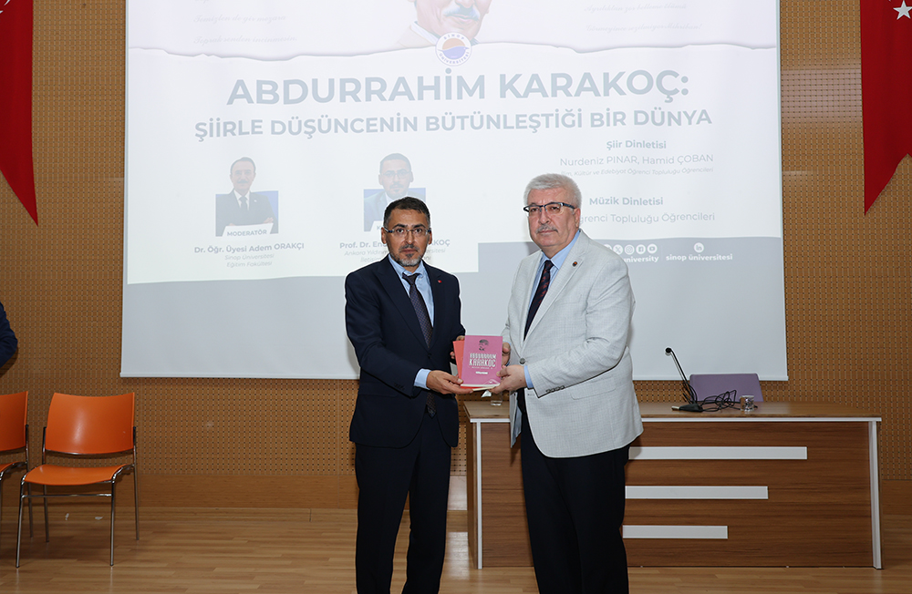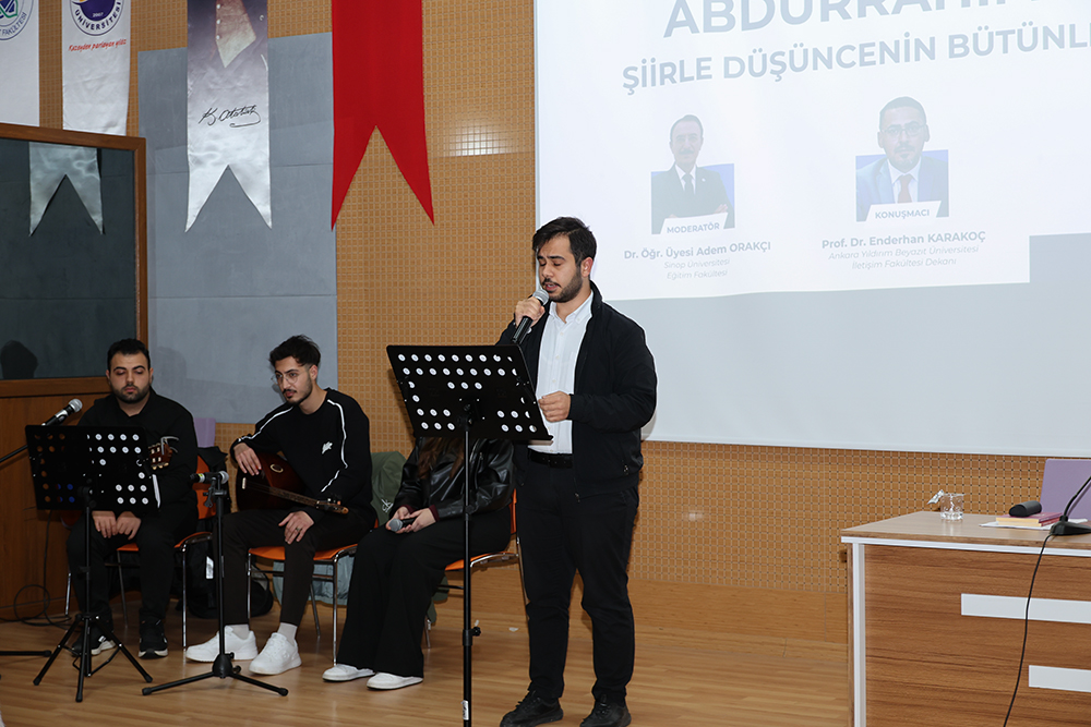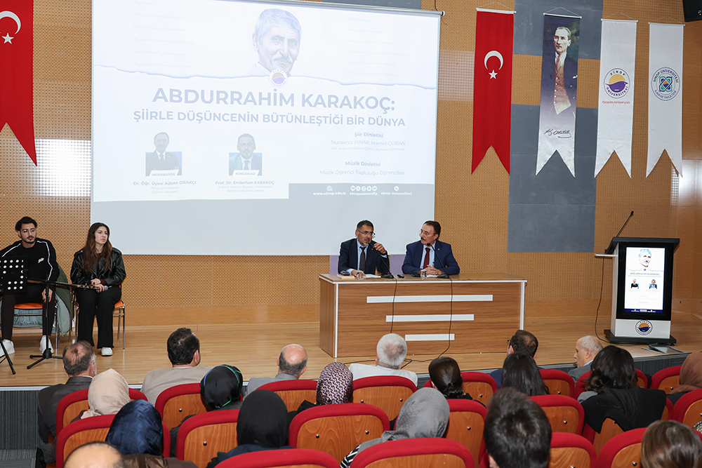 Enderhan Karakoç, Abdurrahim Karakoç’un eserlerindeki düşünce evrenini, toplumsal meseleleri ele alış biçimini ve şiirlerindeki sembolik dili detaylı bir şekilde anlattı. Şairin hem halk edebiyatına hem de modern şiire kattığı özgün yorumların altını çizen Prof. Dr. Enderhan Karakoç, Karakoç’un şiirlerinde “hakikat arayışı, insan ve toplum gözlemleri, vicdanî duruş” gibi temaların ön plana çıktığını vurguladı.