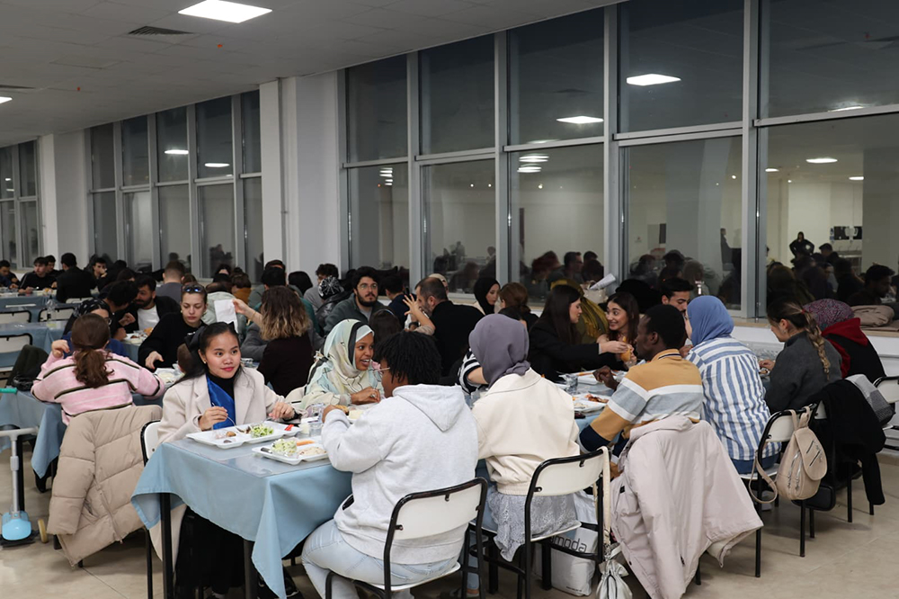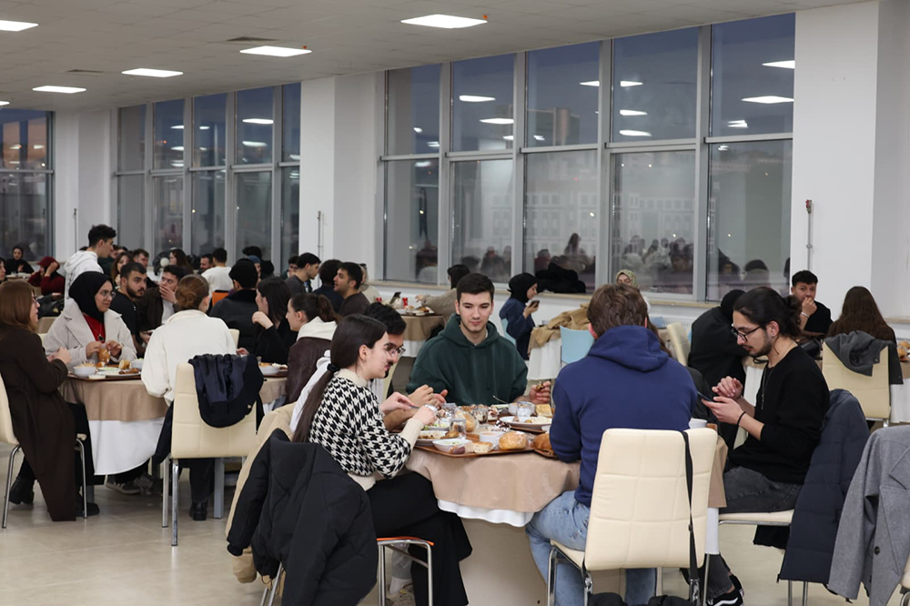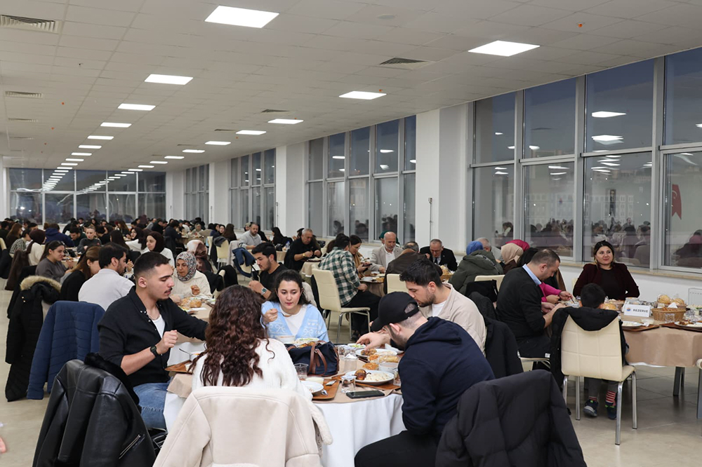 Ezanın okunmasıyla birlikte Rektörümüz Prof. Dr. Şakir Taşdemir, Rektör Yardımlarımız Prof. Dr. Muhitdin Yılmaz, Prof. Dr. Sabri Bilgin ve Prof. Dr. Esra Bozkurt Altan, Turizm Fakültesi Dekanı Prof. Dr. Gül Erkol Bayram, Genel Sekreterimiz Şenol Metin, Turizm Fakültesi Turizm Rehberliği Bölümü, Rekreasyon Yönetimi Bölümü, Gastronomi ve Mutfak Sanatları Bölümünden akademisyenler ve öğrenciler, farklı birimlerden öğrenciler ve idari personel hep birlikte iftar yaparak Ramazan’ın manevi atmosferini paylaştı.