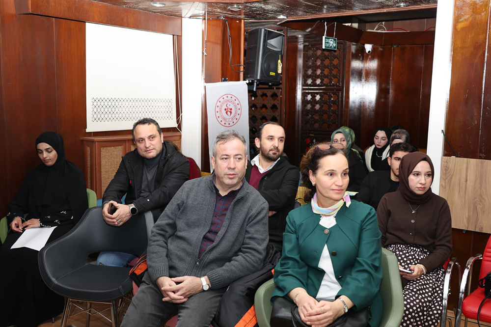 Eğitim Fakültesi Dekan Yardımcısı Dr. Öğr. Üyesi Adem Orakçı’nın moderatörlüğünde düzenlenen programda konuşmacı olarak Üniversitemiz İlahiyat Fakültesi Arş. Gör. Dr. Gülsüm Rüveyda Gül yer aldı. Gül, Mevlânâ’nın yaşamı, öğretileri ve insan anlayışı üzerine kapsamlı bir sunum gerçekleştirdi. Gülsüm Rüveyda Gül, Mevlânâ’nın evrensel mesajlarını katılımcılarla paylaşarak, insanın kendini tanıma yolculuğu, sevgi ve hoşgörü anlayışı, toplumsal barış ve huzur kavramları üzerine önemli değerlendirmelerde bulundu.